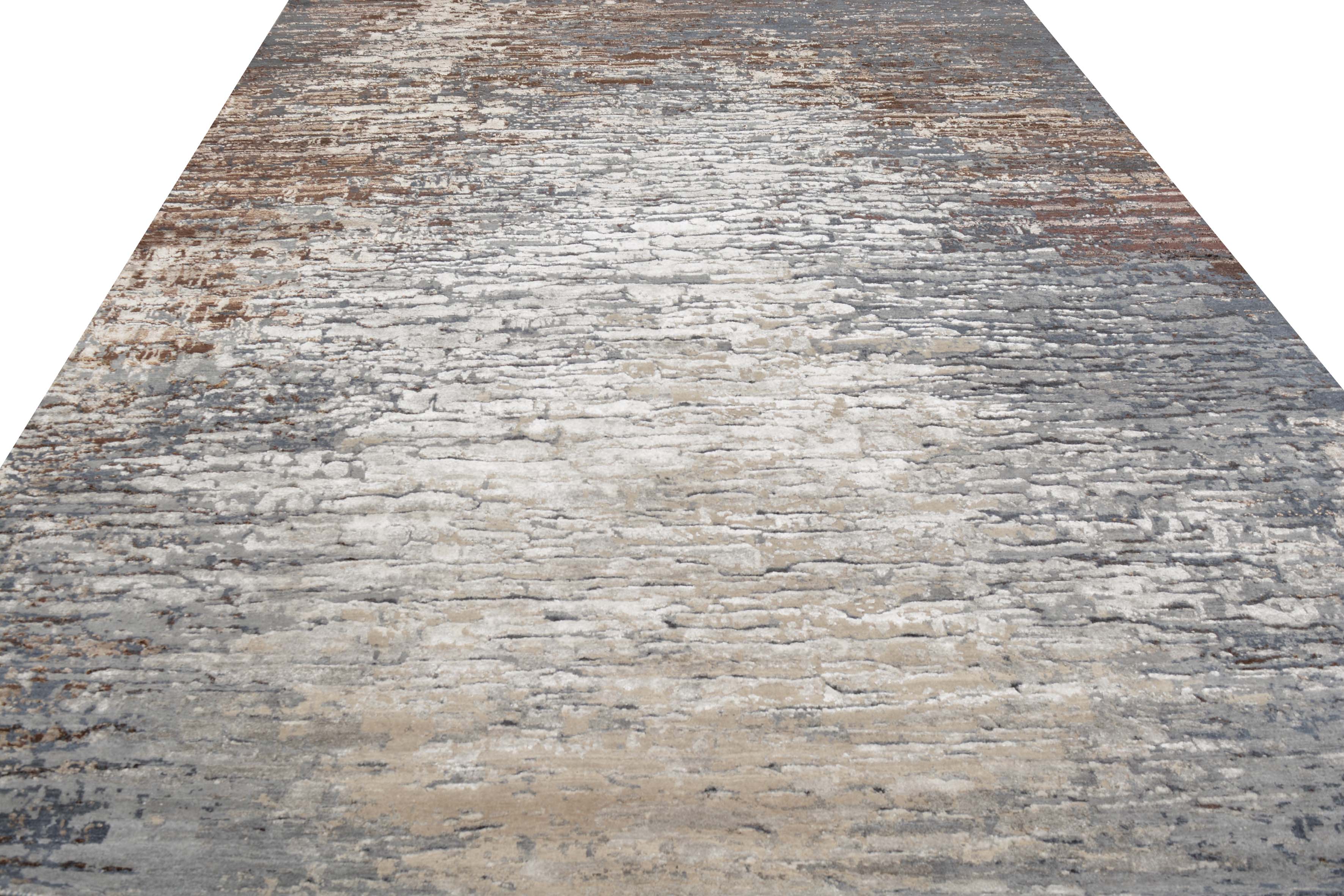Effortless luxury defines this alluring and stunningly soft hand-loomed viscose area rug. The perfect accent for a glamorous bedroom, this neutral greige layer boasts a dazzling luster and artistically distressed design.